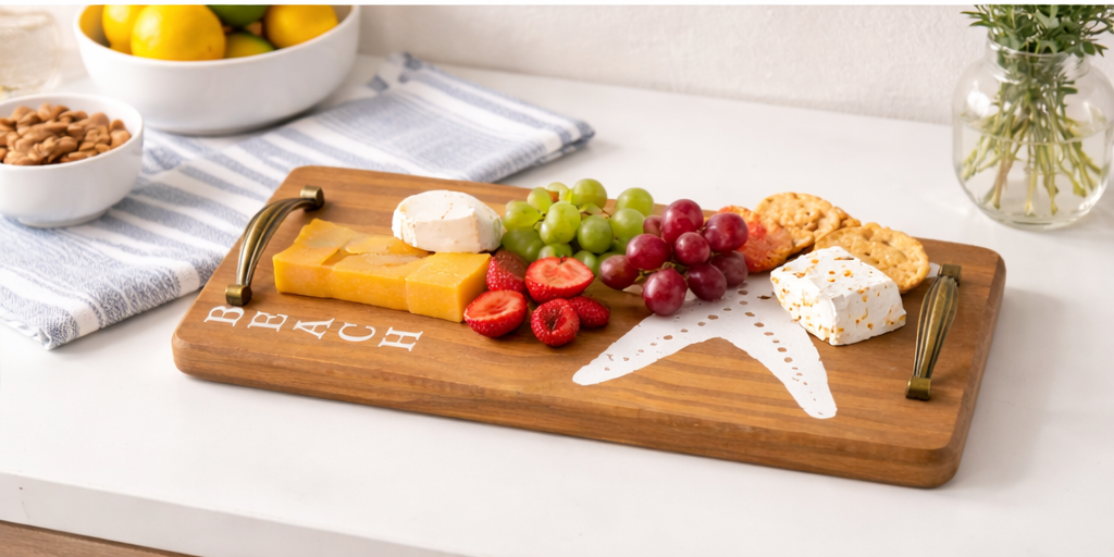Transforme qualquer momento simples em uma experiência sofisticada com a bandeja Pearl Coast. Seu design elegante com acabamento em madeira e alças douradas em acabamento rústico traz um toque de luxo discreto, perfeito para quem valoriza o bom gosto e ambientes bem decorados.