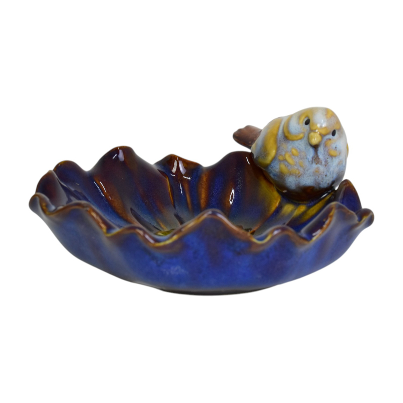 Porta Objetos Flores Com Passaros Azul