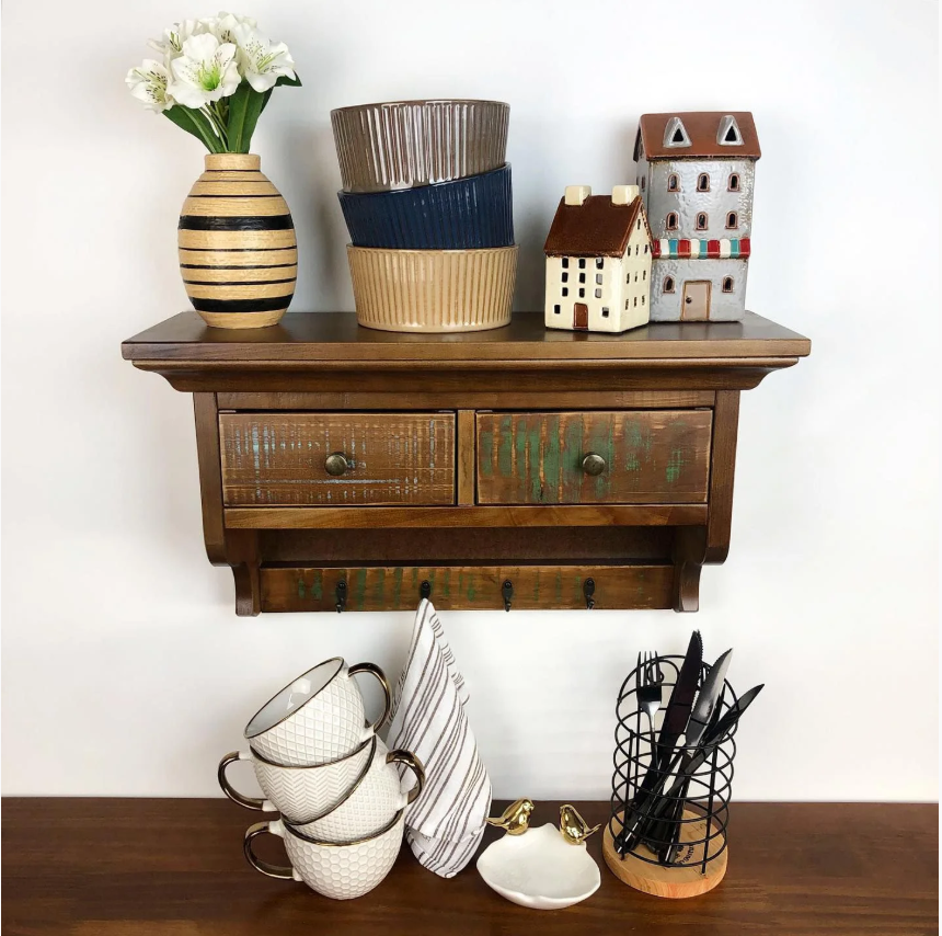 Com o uso de madeira de qualidade e um belo acabamento, as prateleiras são uma excelente opção para compor a decoração da sua cozinha, trazendo organização e elegância ao ambiente.