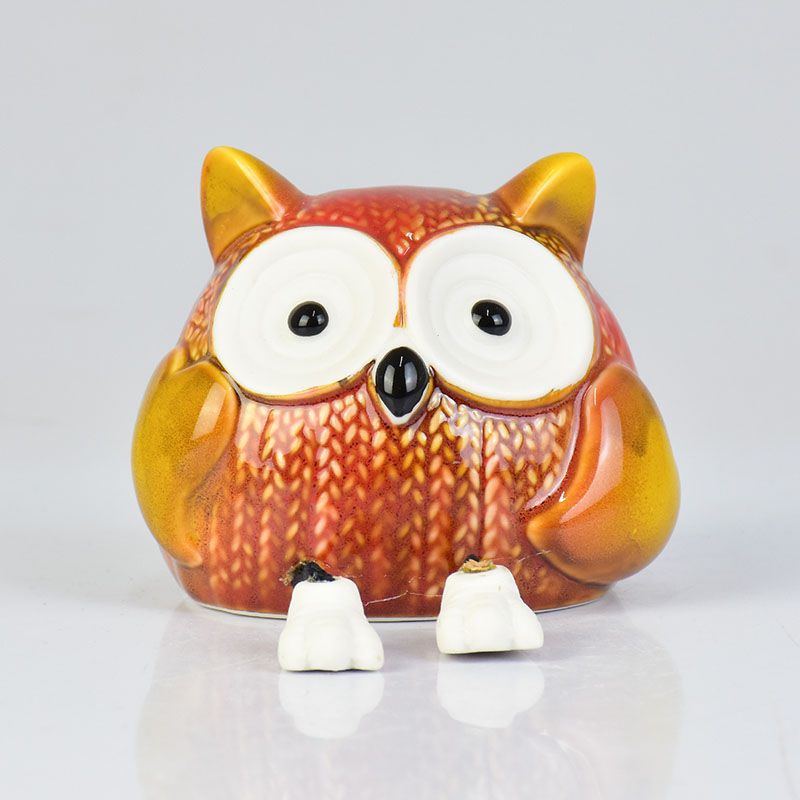 Coruja Vermelha C/ Pés Brancos em Cerâmica