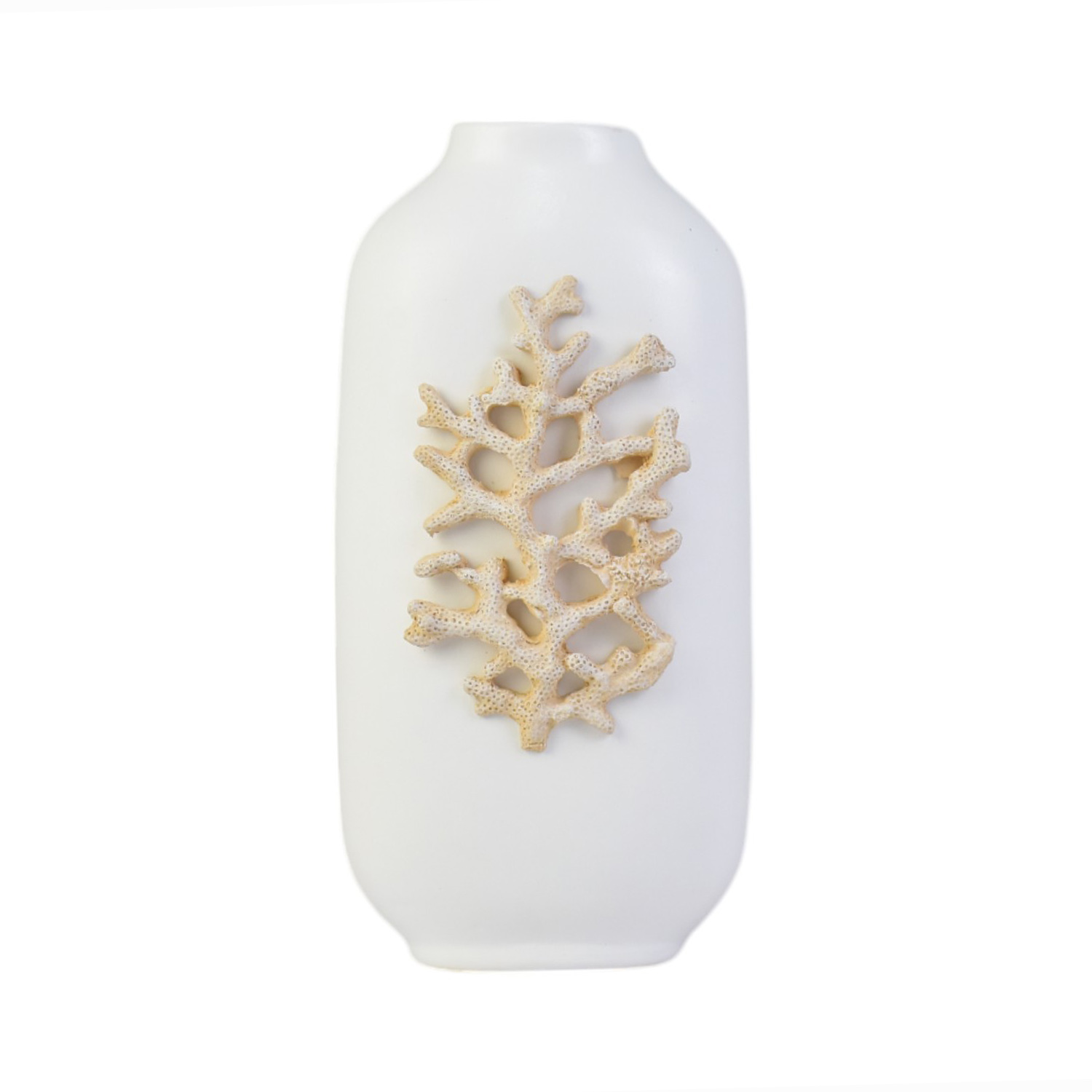 Vaso Branco com Coral em Resina em Cerâmica