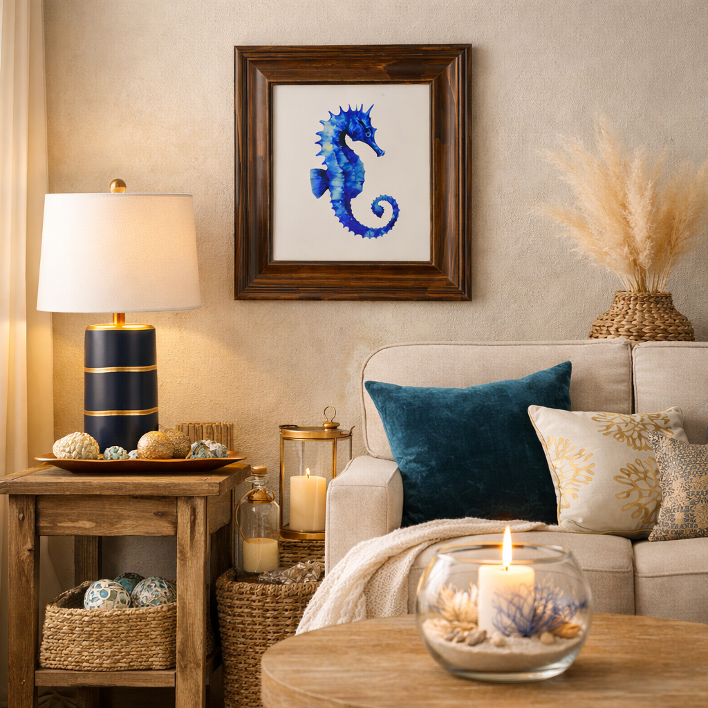 Quadro Cavalo Marinho Azul