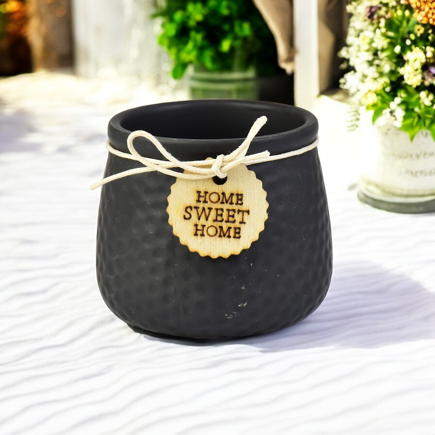Vaso Color Textura Preto em Cerâmica